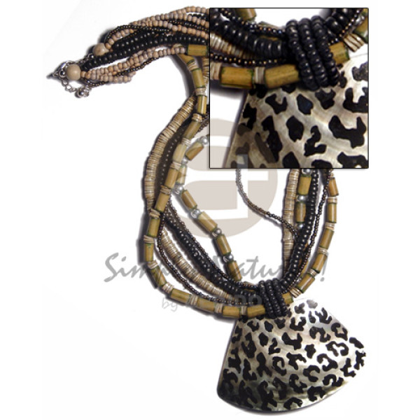 5 layers wax cord white clam & glass beads combination & 40mm round hammershell pendant..