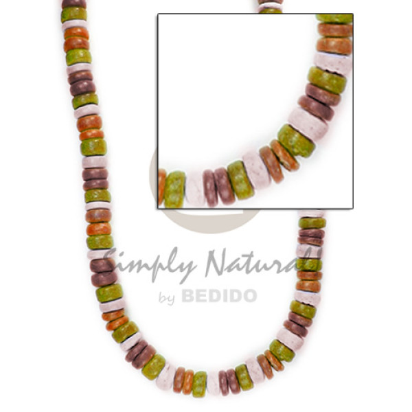 2-3mm nat. brown coco Pokalet. tassled wood beads & moon shell combination /26 in...