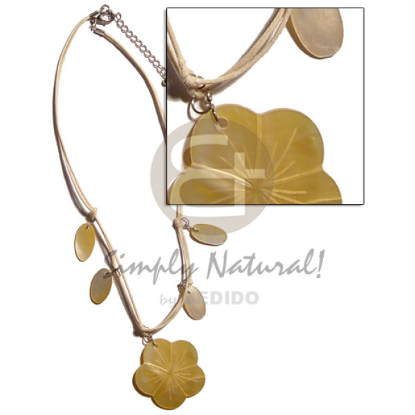 40mm scallop MOP in double wax cord dangling 4 20mm oval MOP accent..