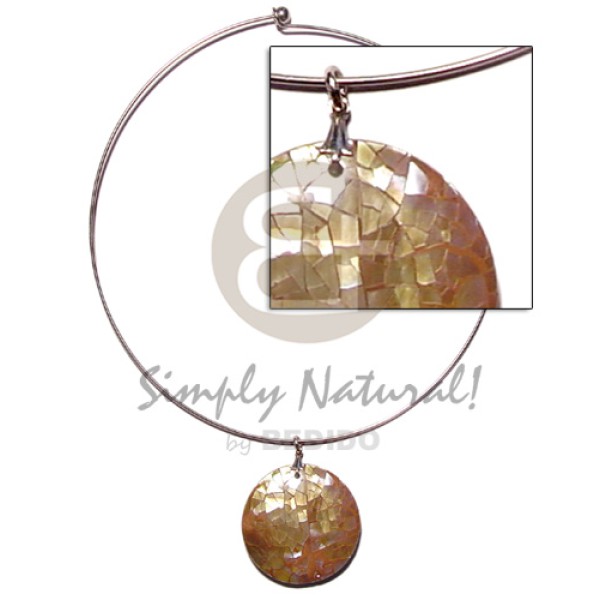 nickel-free silver hoop ring round brownlip shell cracking resin backing..