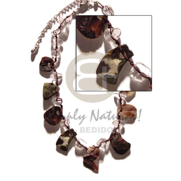 5 layers wax cord white clam & glass beads combination & 40mm round hammershell pendant..