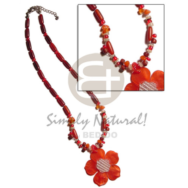 red horn capsule hammershell heishe & 45mm red hammershell flower grooved nectar pendant..