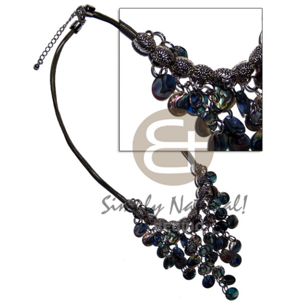 cleopatra- dangling 10mm ( 36pcs.) paua shell metal accent in triple black wax cord..