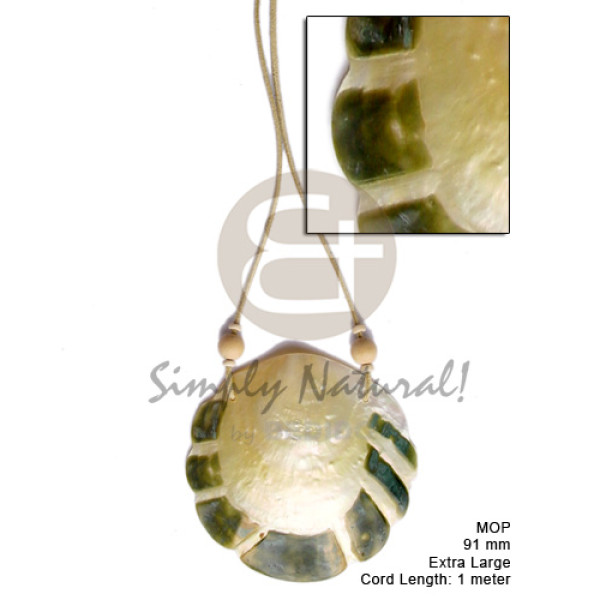 wax cord coco Pokalet/wood beads/bamboo 15mm MOP floral pendant..