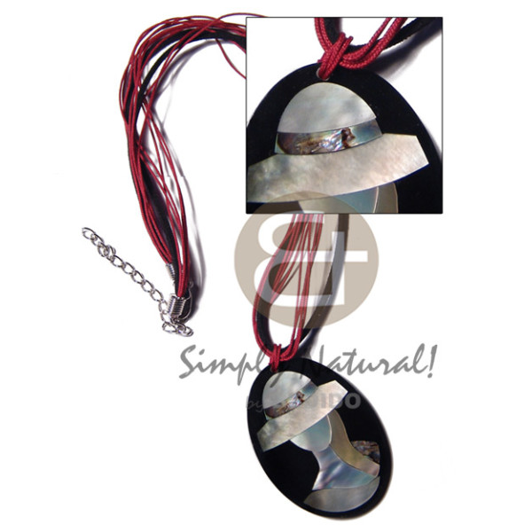 black leather thong 4 rows red cord and 50mmx38mm oval pendant /elegant hat lady delicately etched ..