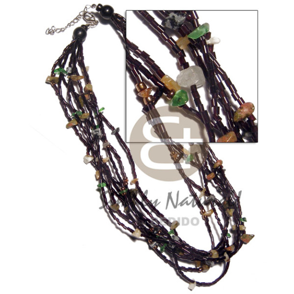 tan 2-3mm coco heishe wire choker buri & wood beads accent & brownlip pendant..