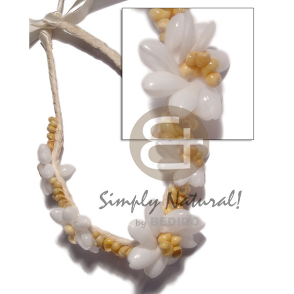 braided flat abaca choker 5 pcs flower bubble shells and yellow mongo shells accent / 16in. brai..