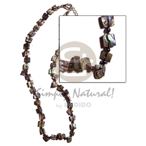 cleopatra -choker/ 4 pcs. 30mmx30mm rectangular hammershell dangling glass beads and hammershell nu..