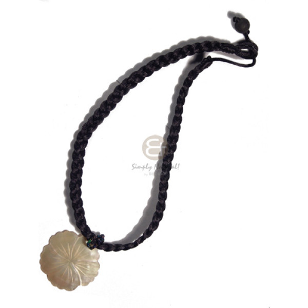 satin black cord flat braided macrame 45mm MOP flower pendant / 15in plus 3in adjustable cord..