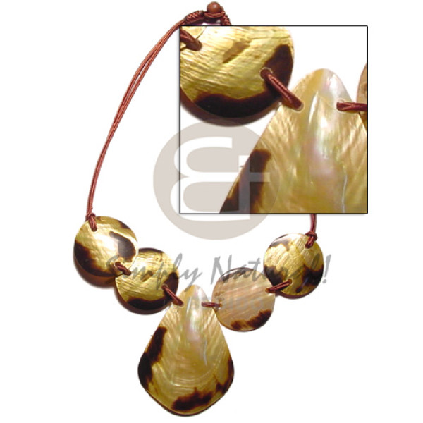 4 round 35mm round brownlip tiger & 62mmx45mm teardrop center cord necklace..
