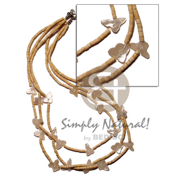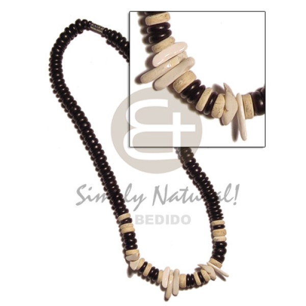 2 rows 2-3 mm heishe nat. chocolate orchids combination and center wood tube burning accent..
