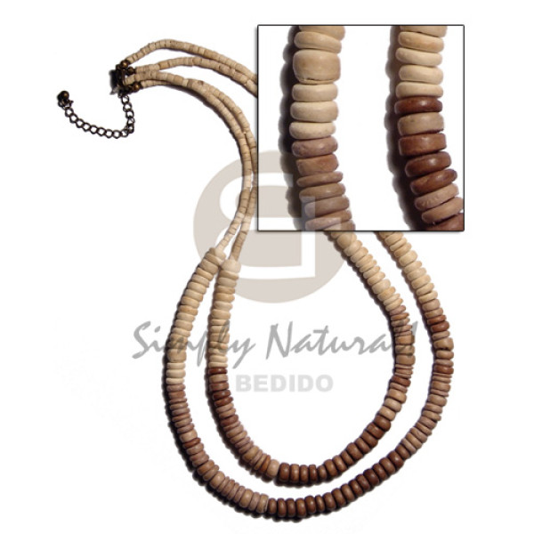 2 graduated rows of 7-8mm coco Pokalet bleached and dyed 2-3mm coco heishe combination /22in/18in..