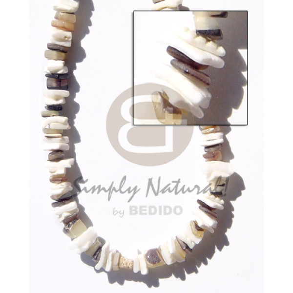 2-3mm coco heishe pastel blue white shell sq cut alt and skeleton pendant..