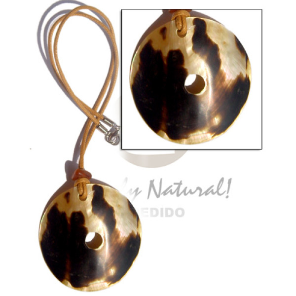 48mmx18mm triangular laminated cracking blacklip shell pendant backing on leather thong..