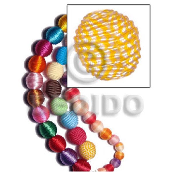 20mm natural white round wood beads wrapped in yellow two toned sutash cod / price per piece..