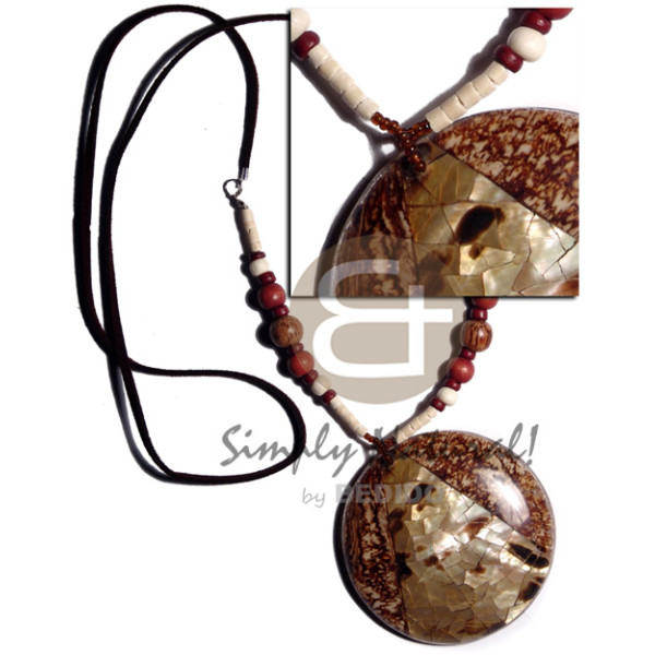 leather thong 2-3mm bleach coco heishe wood beads combination and round 65mm laminated coco brown..