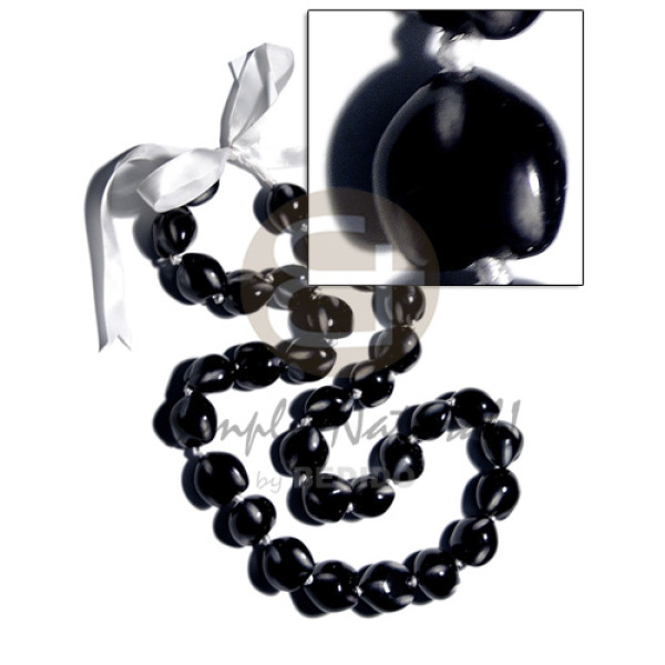 20mm/25mm round wrapped wood beads, black kukui nuts and wood beads combination in black wax cord..