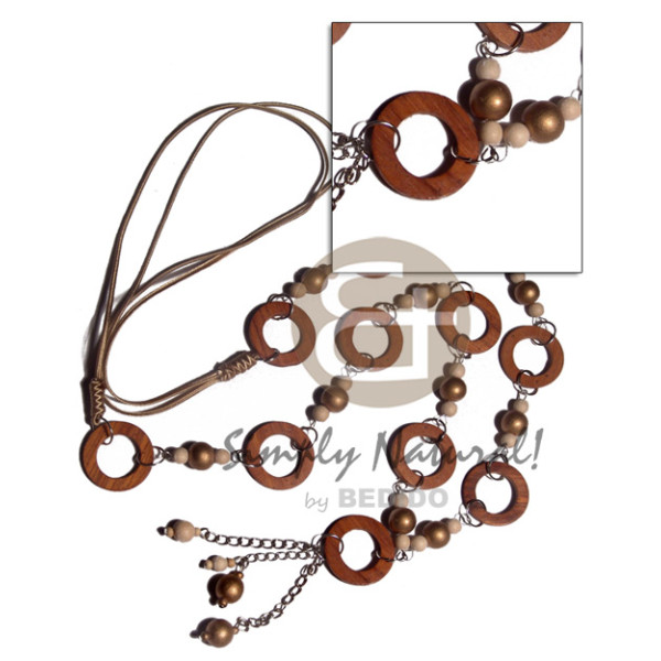 11pcs round 40mm wood ring wood beads in satin cord metal chain tassles / adjustable knotted cord..