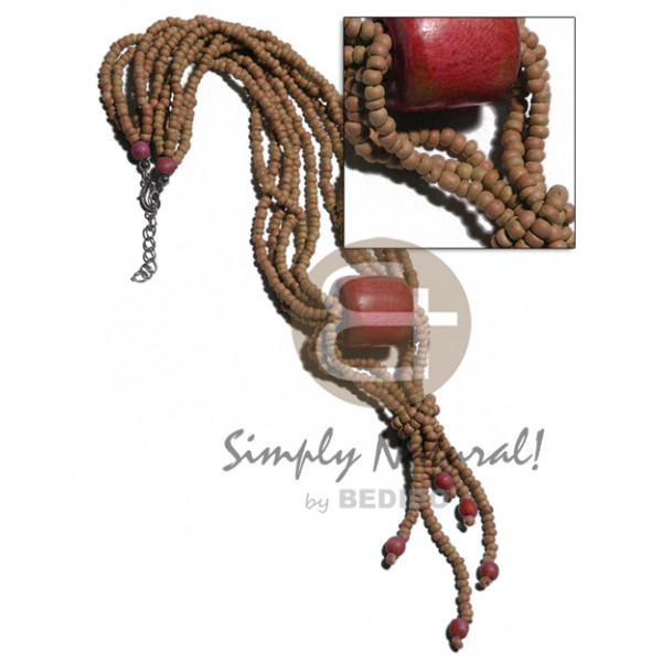 tassled 5 layers 2-3mm coco Pokalet 23mmx23mm cylinder nat. wood accent / dark red and saddle brow..