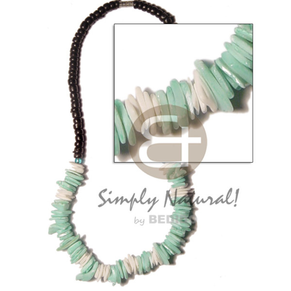 4-5mm coco heishe melon black 4-5mm coco Pokalet, wood beads & white clam heishe combination..